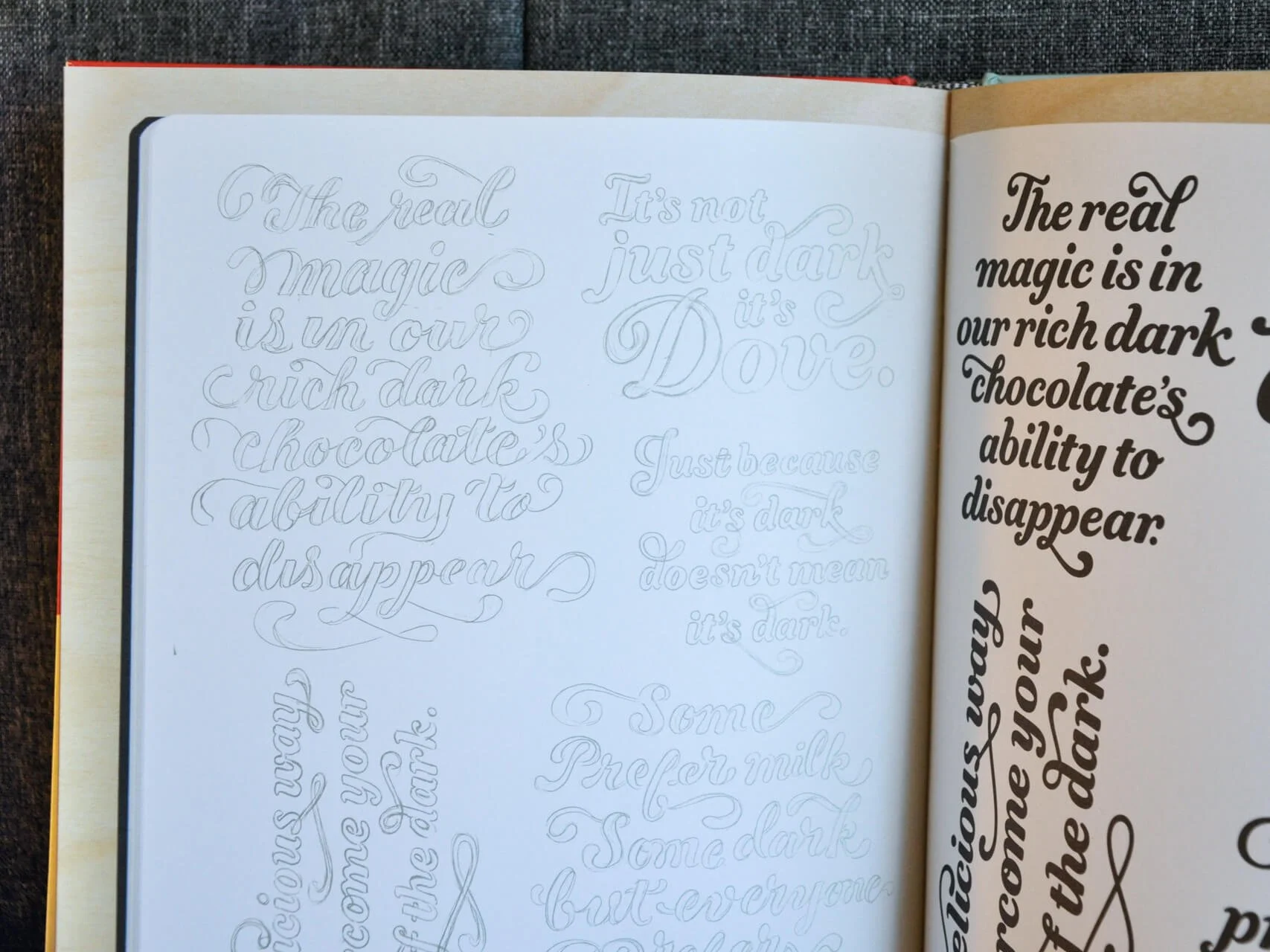It’s fun to see how Hische’s sketches go from penciled, quick concepts to polished, inked designs.