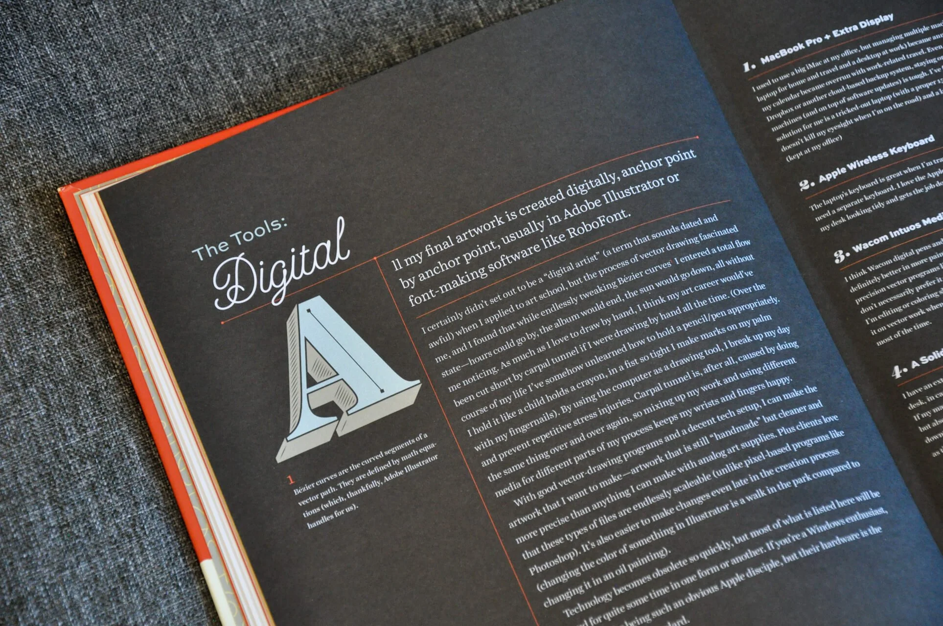 One point of critique, however, is an occasional issue with legibility—particularly in the tools section and featured projects. In those areas, the already thin letterforms are set so small they appear wispy and hardly legible against the background. It’s a combined issue of font choice, scale, and color. Print is always a challenge, for many reasons. Thankfully, it’s not an issue that affects the main body of content.