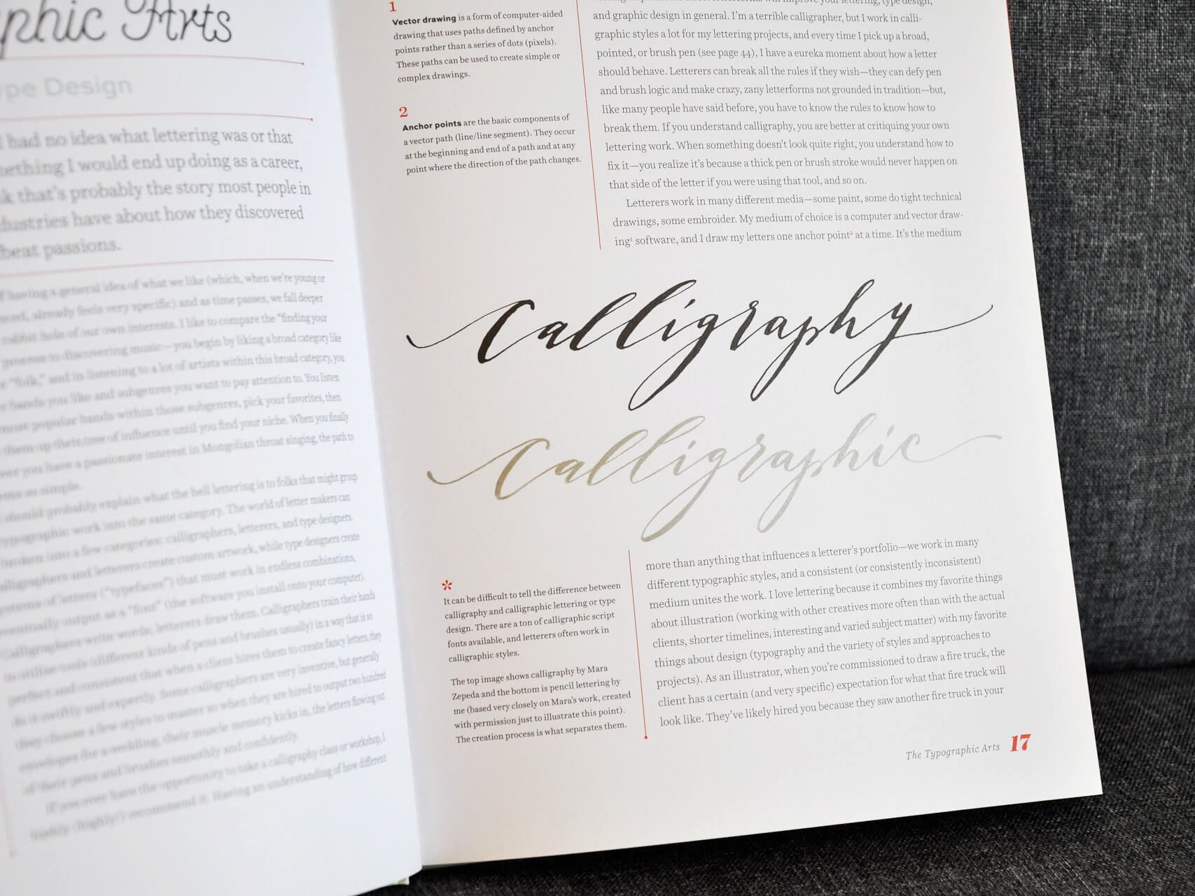 To add visual variety, the content of some sections is presented as if you’re looking directly into Hische’s sketchbook. It’s an easy, creative way to add interest for the reader without interrupting their reading flow, and fits well with the theme of the book.