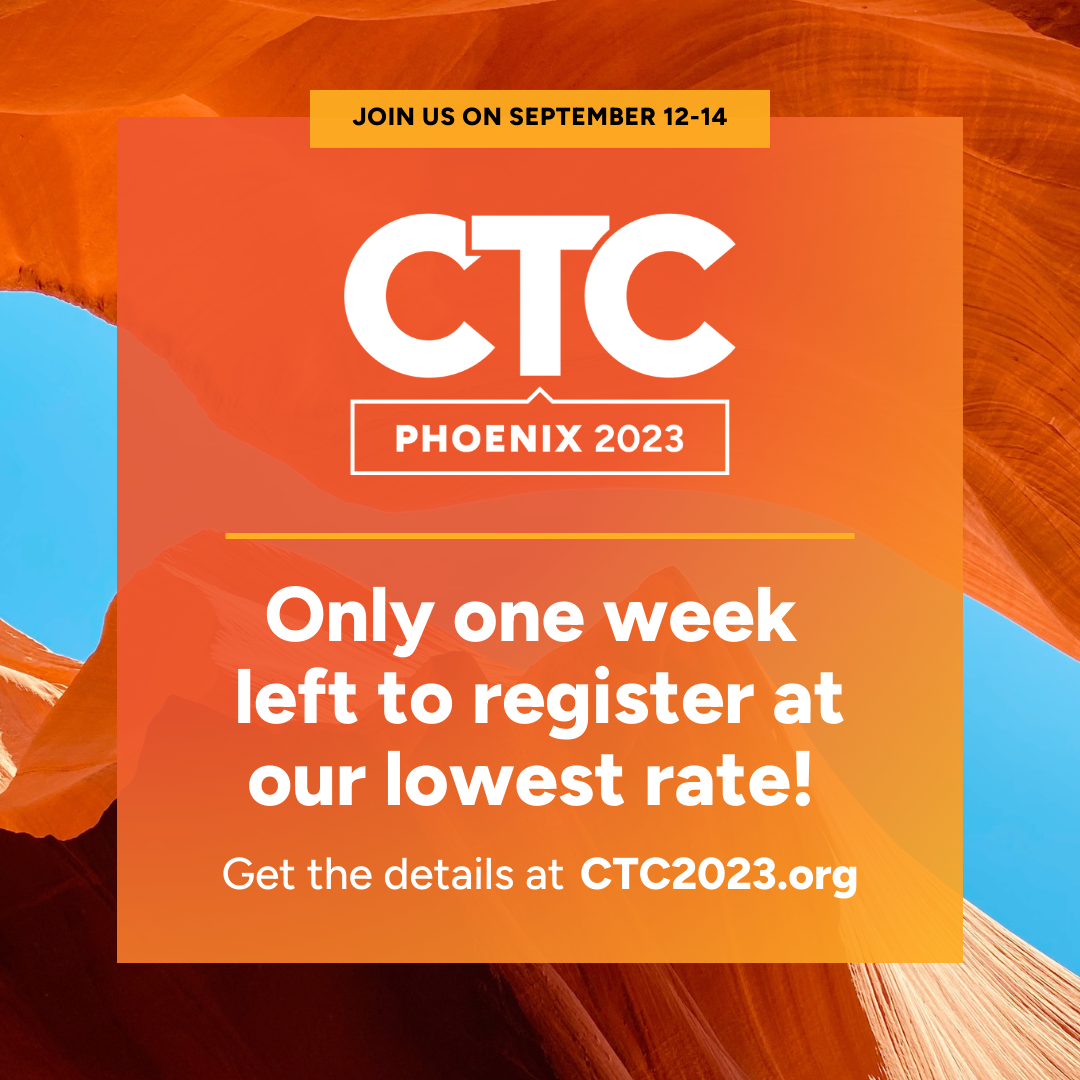 After thoroughly testing the new brand kit, we got to work deploying it for both the marketing campaign and on-site materials. It worked out phenomenally well across all kinds of media, from the website to the range of display materials at the conference proper. It made for a bolder, sharper look for CTC—one that received rave reviews from speakers using our branded social graphics advertising their presentations, as well as our new deck templates. Audiences benefited from the improved presentation styles and more readable signage—and got to enjoy a vibrant, photo-worthy environment.
